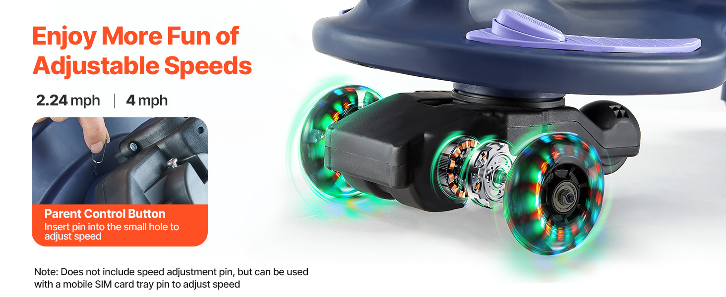 Dual Adjustable Speeds:Equipped with a 6V battery and a 25W motor, this swing car delivers steady and reliable performance, allowing riders to enjoy speeds of up to 4 mph for an exciting experience.