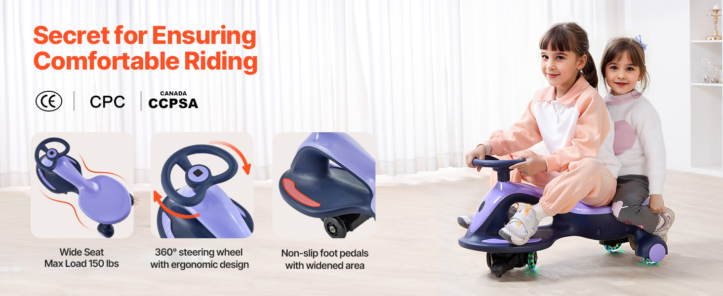 Enjoy a smooth and relaxing ride:To enhance the riding comfort for children, we have incorporated carefully designed features into the wiggle car, ensuring a seamless and pleasant experience.