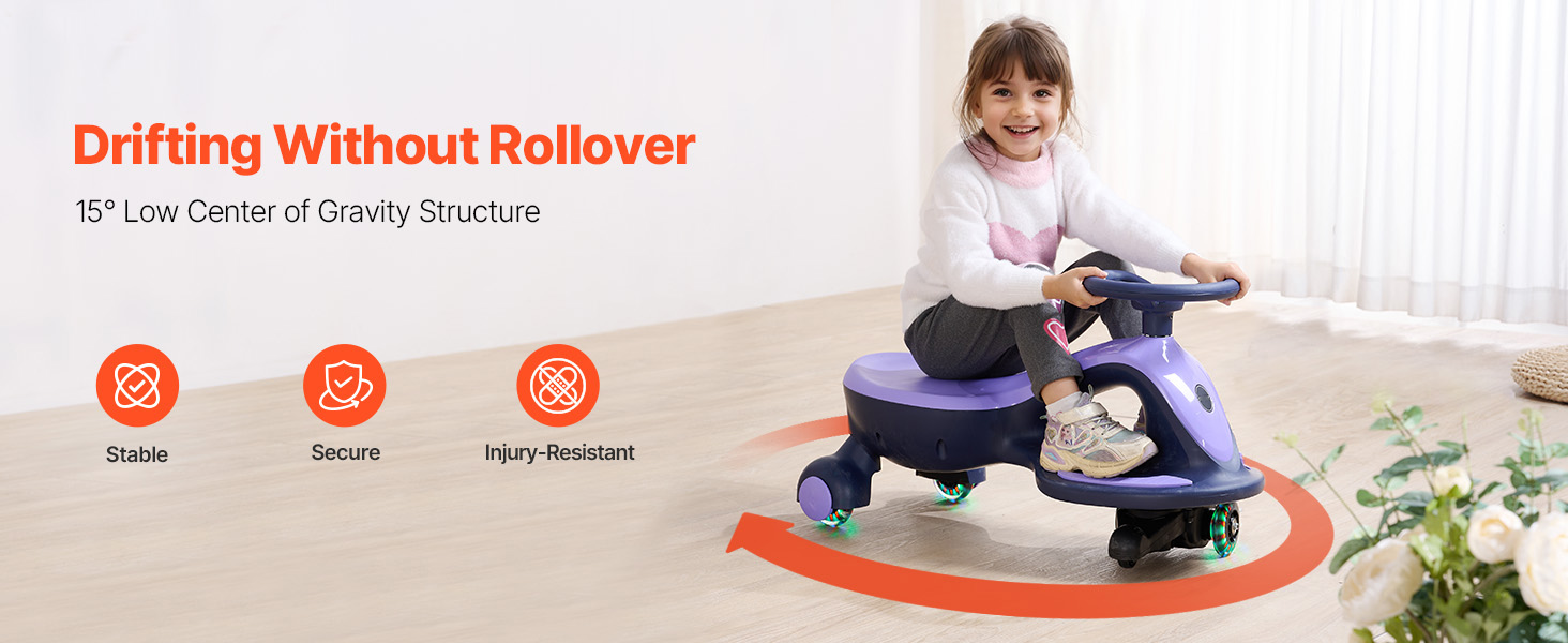 Designed with a stable and balanced structure, this product features a low center of gravity to enhance safety and performance during use:Designed with a 15° ergonomic tilt, this electric wiggle rider ensures enhanced stability for young users, reducing the risk of accidents and promoting safer riding experiences.