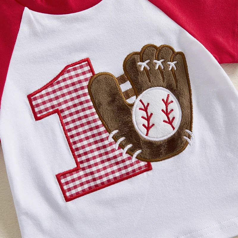 Baby Birthday Outfits Baseball Embroidery Short Sleeve T-Shirt and Plaid Shorts Set for Toddler Girl Boy Cute ClothesFeatures
