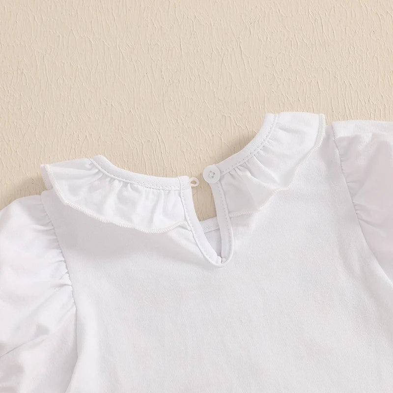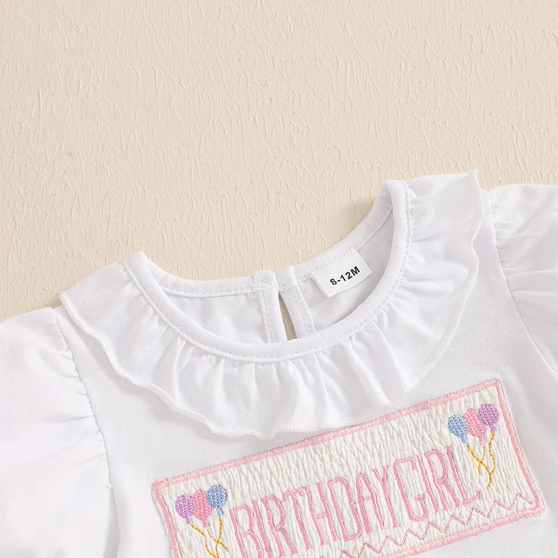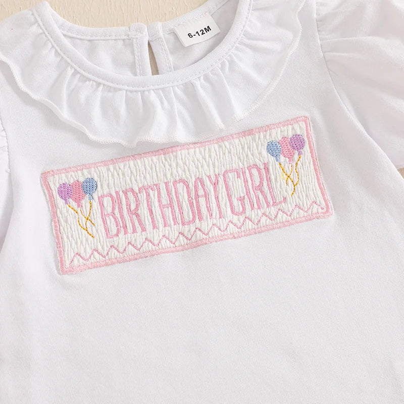 Toddler Little Girl Birthday Outfit Balloon Letter Embroidered Short Sleeve T shrits Solid Color Ruffle Shorts 2Pcs Set