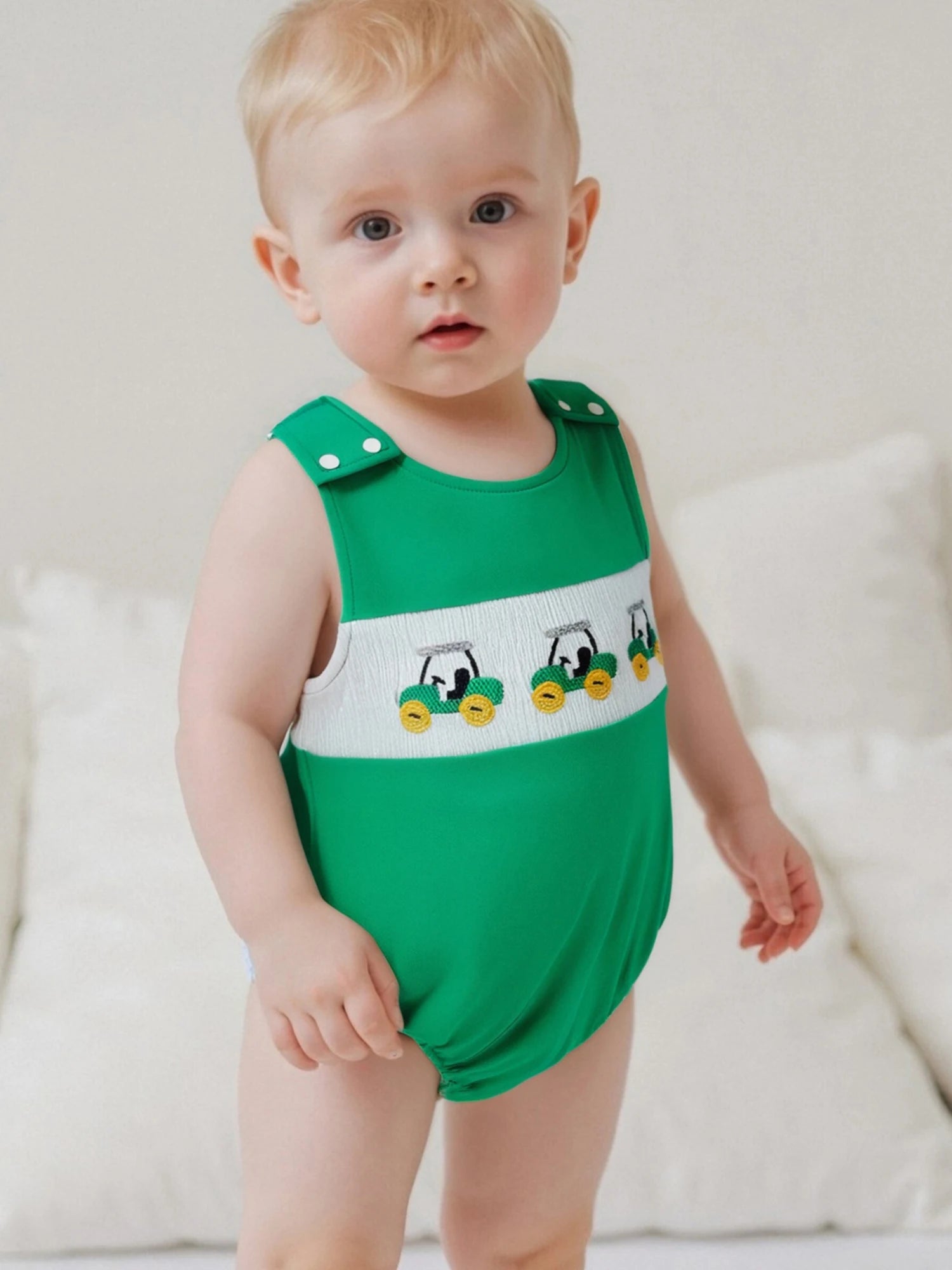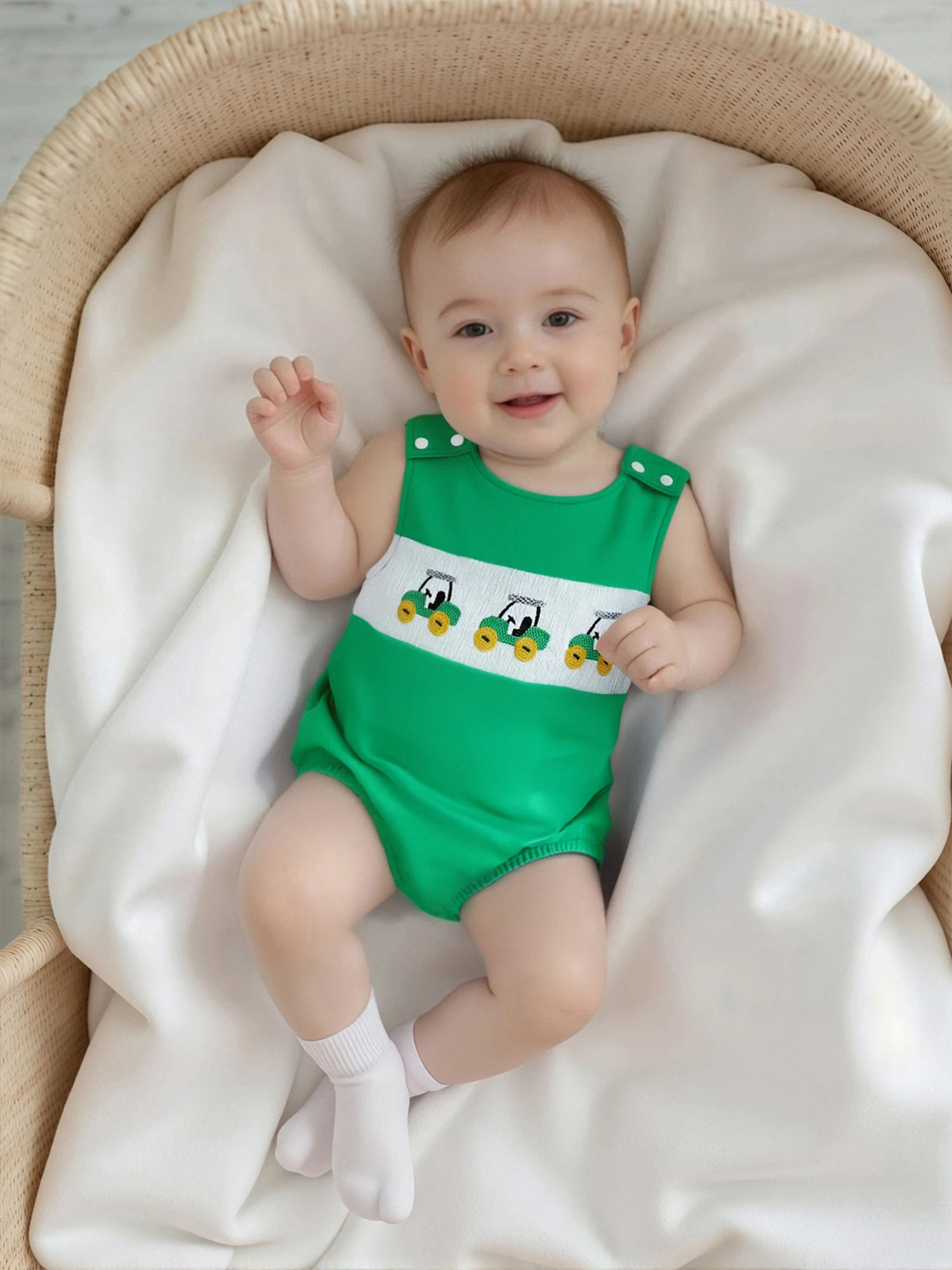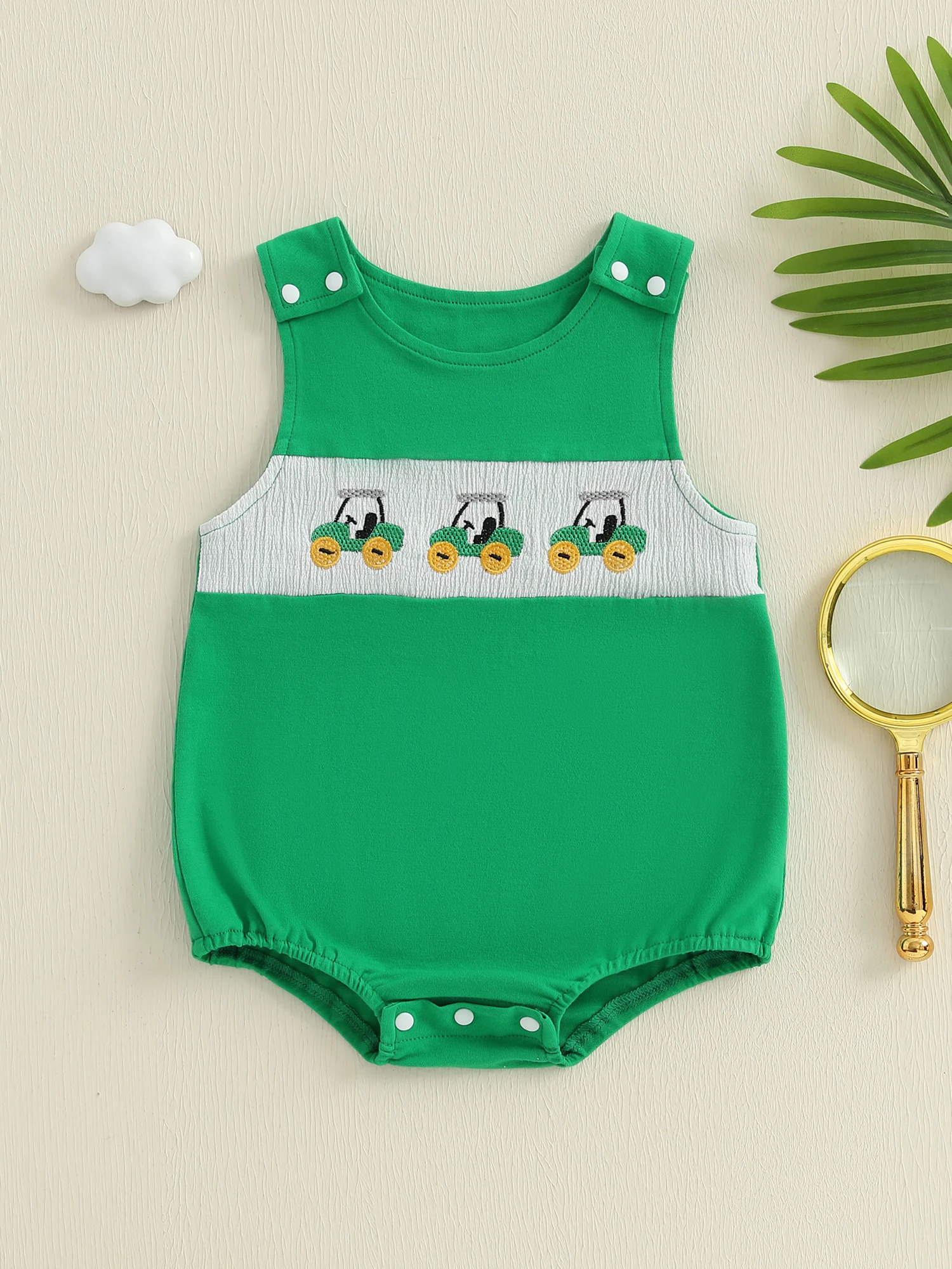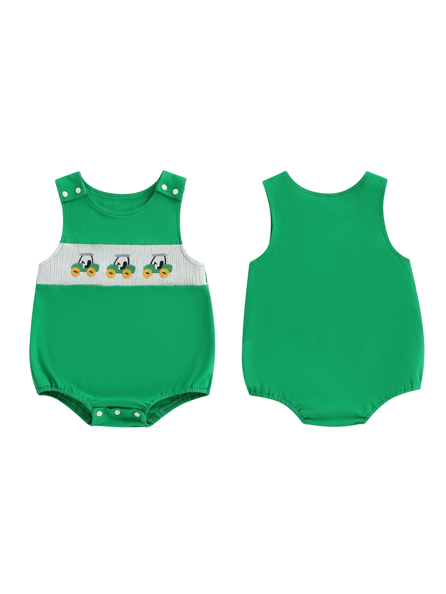 Baby Cart Embroidered Overalls Round Neck Sleeveless Bodysuit Cute Toddler Summer Clothes
