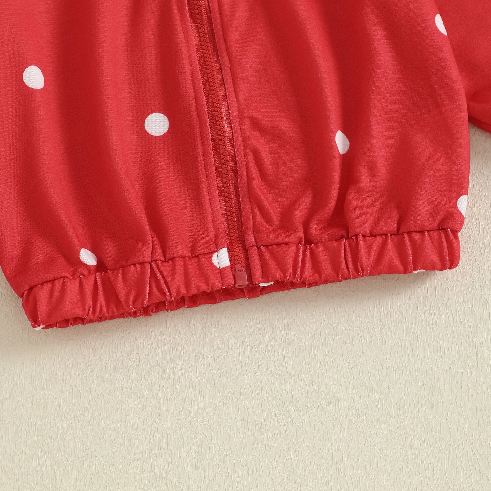 Little Girls Autumn Hooded Coat Red Long Sleeve Zip Up Strawberry Jacket