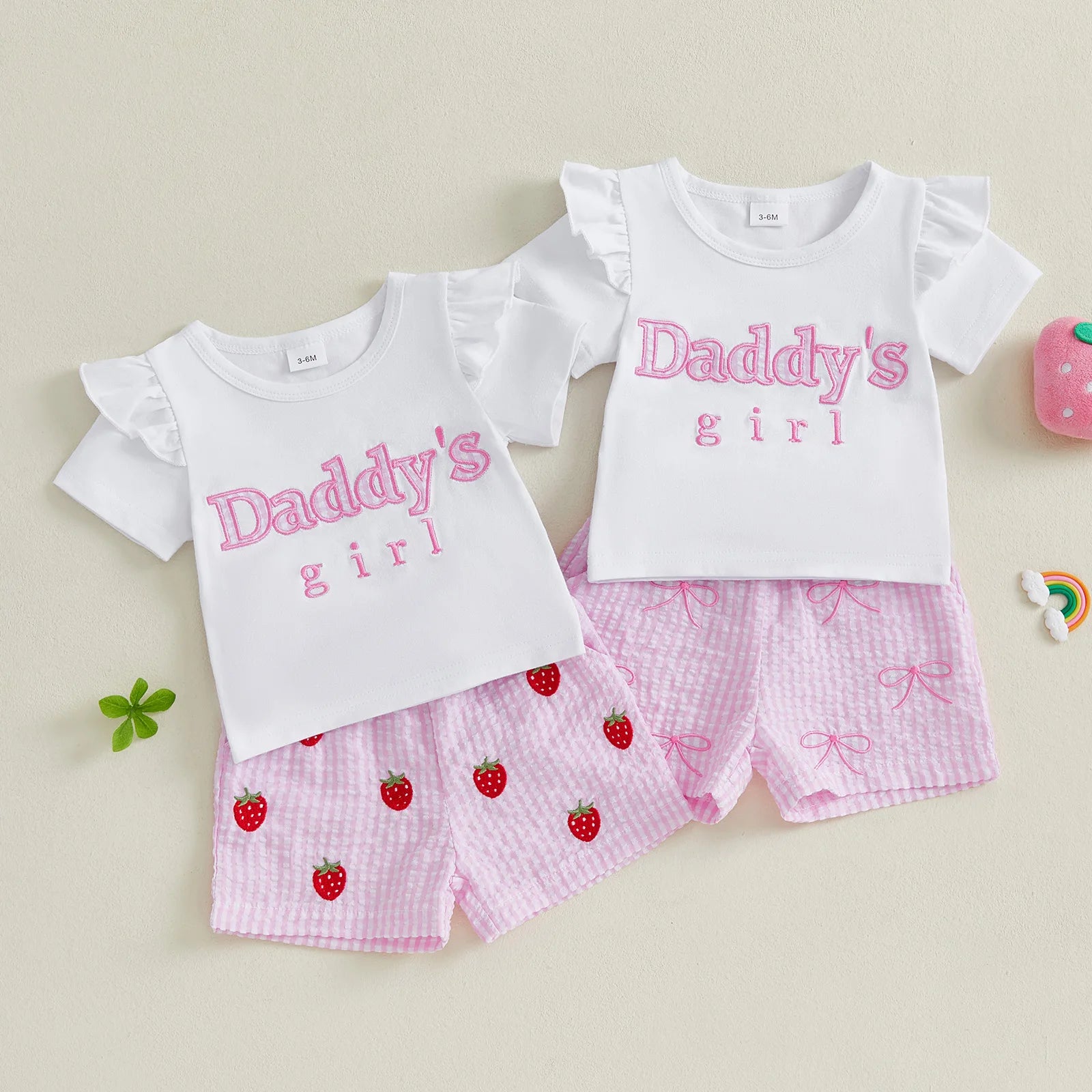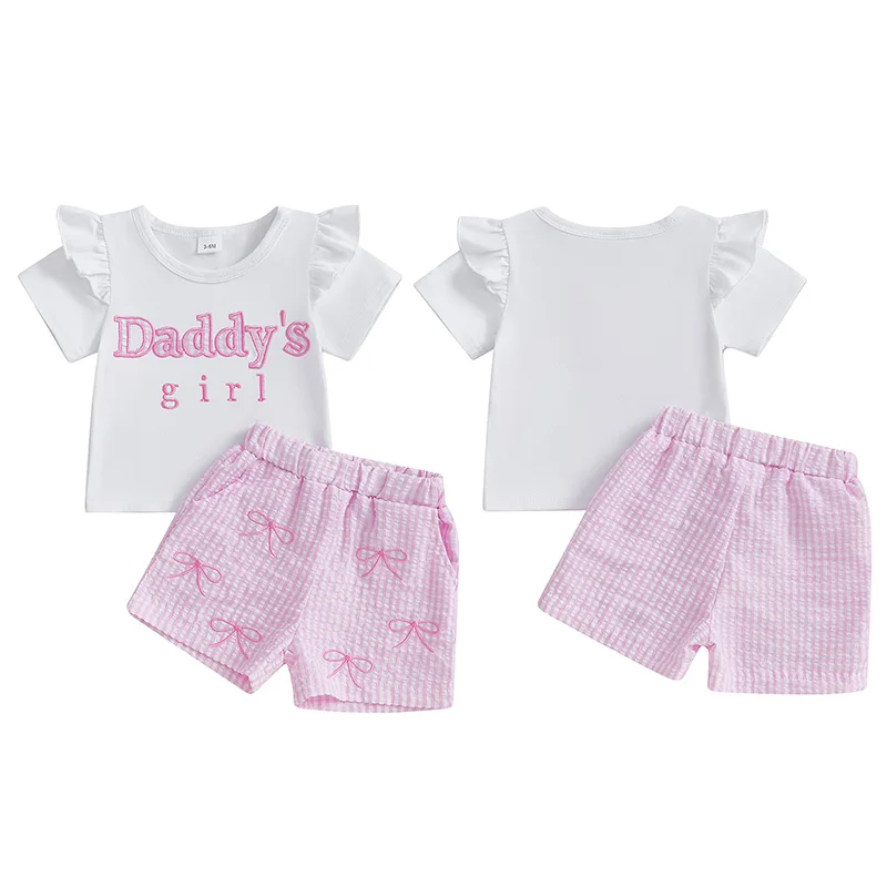 Baby Girls Shorts Set, Short Sleeve Embroidery Letters T-shirt with Plaid Shorts Summer 2-piece Outfit