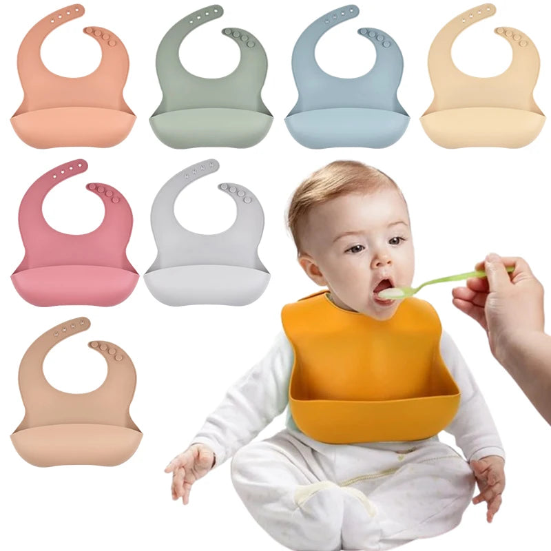 Baby Silicone Bib Waterproof Soft Solid Color 4-speed Adjustable Bibs Newborn Lunch Feeding Saliva Pocke Kids Eating Accessories