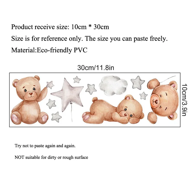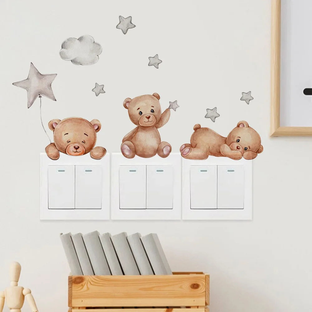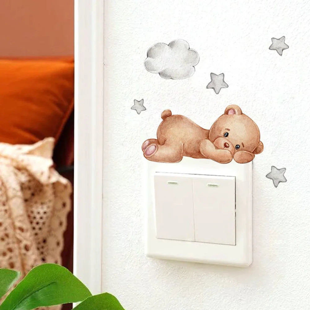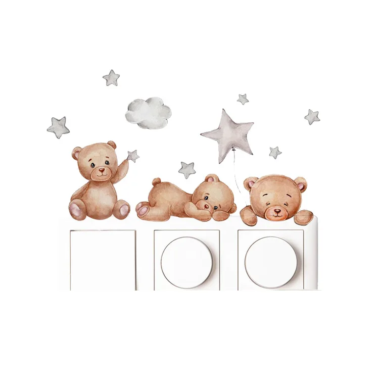 Cartoon Animal Bear Star Switch Sticker For Kids Room Decoration Decals Bedroom Home Decor Wallpaper Self-adhesive Wall Mural