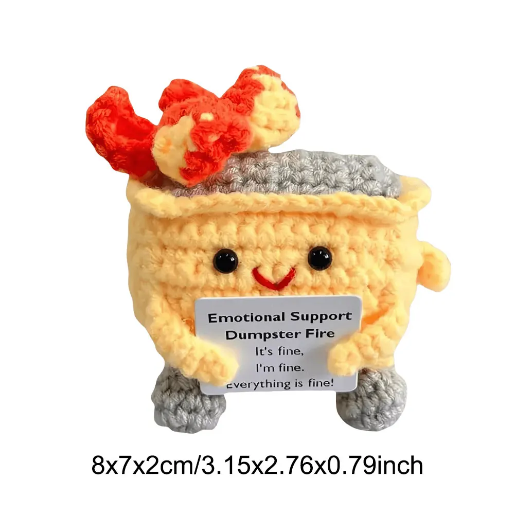 Cute Emotional Support Crochet Dumpster Fire Home Room Decor Funny Dumpster Handmade Knitting Doll Toy Ornament Christmas Gift