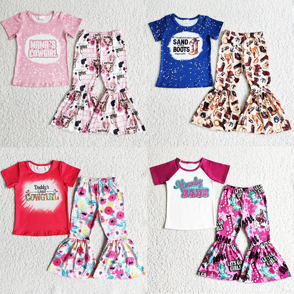 Hot Sale Baby Girls Clothes Short Sleeve Tops Bell Pants Sets Western Kids Clothes Fashion Toddler Girls Clothing Wholesale New