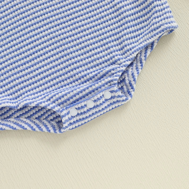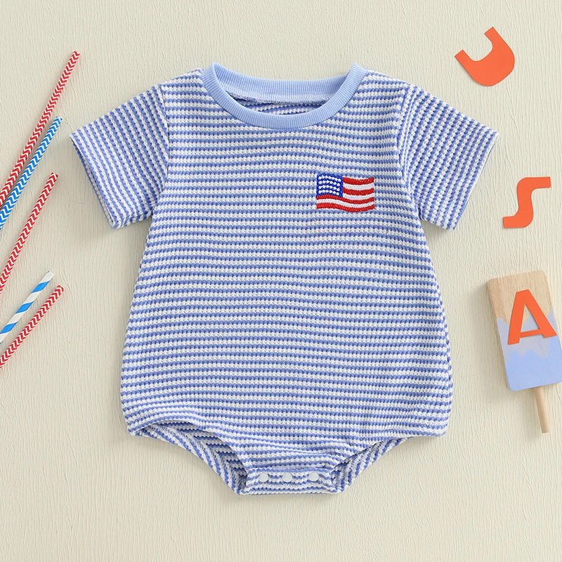 Infant Boys American Flag Romper Short Sleeve Jumpsuit with Patriotic Embroidery and Striped Print for Newborns - Adorable