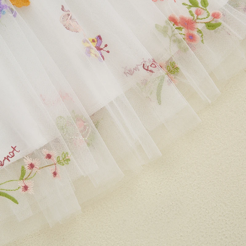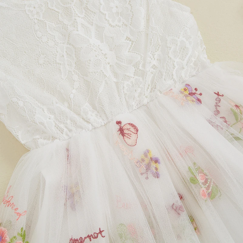 Kids Girl Dress Sleeveless Round Neck Floral Embroidery Dress Toddler Princess Dress