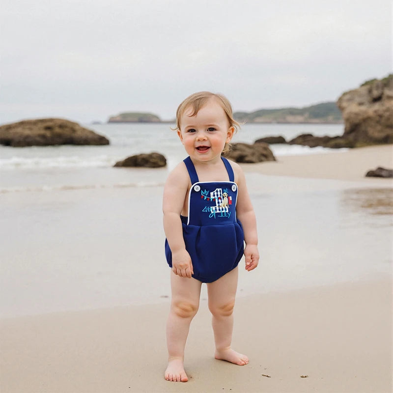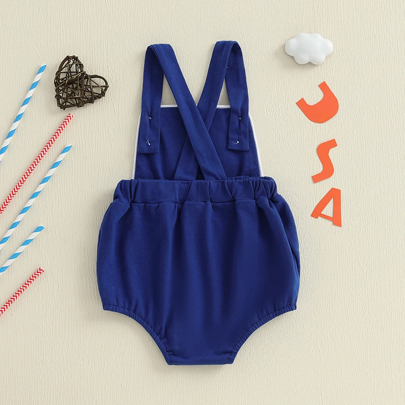 Baby 4th of July Overalls Dog American Flag Embroidered Sleeveless Bodysuit Cute Romper for Infant Boys Girls