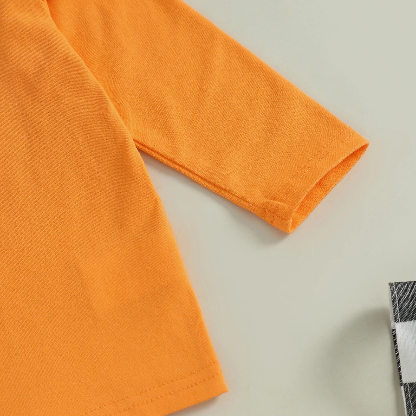 Toddler Baby Girls Skirt Set Solid Color Long Sleeve Tops and Ghost Pattern Plaid Suspender