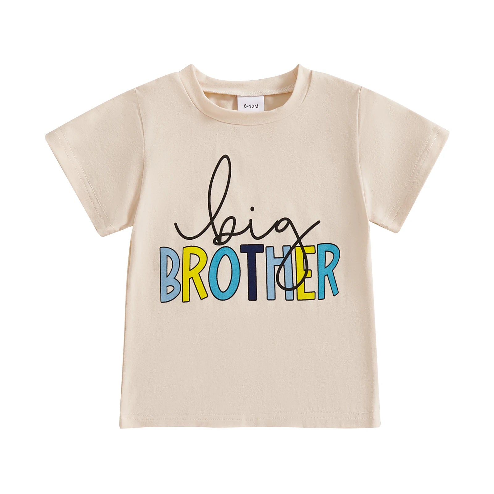 Toddler Girls Boys T-Shirts Letter Print Short Sleeve Shirts Summer Casual Fashion Kids Tops Brother Sister Matching Outfits