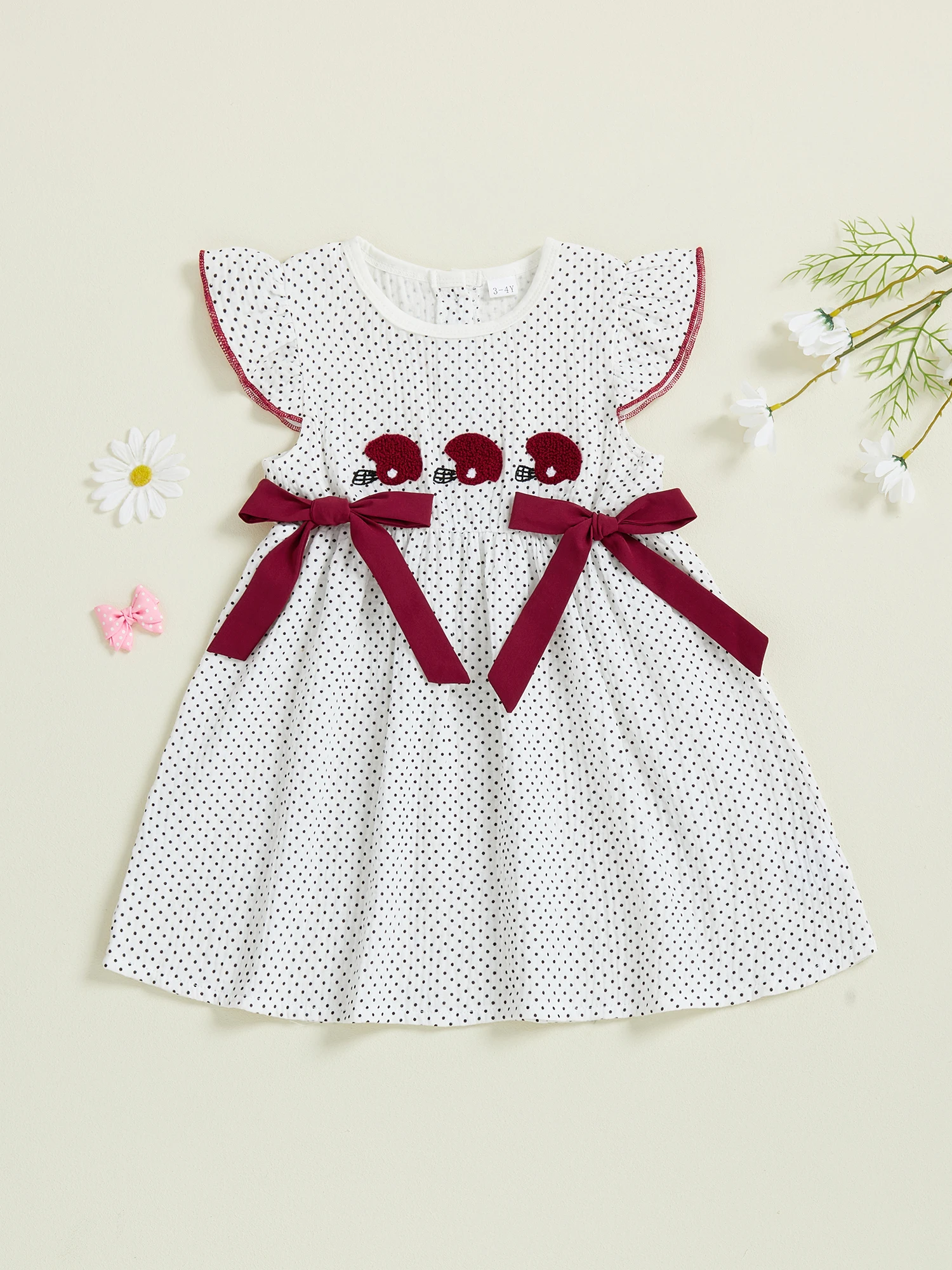 Baby Girl Summer Dress Ruffle Sleeveless Round Neck Dots Print A-Line Dress Toddler Casual Dress