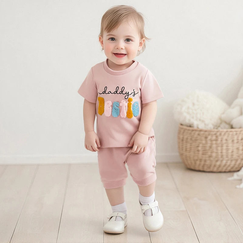 Toddler Girl Summer Outfits Letter Embroidery Crew Neck Short Sleeve Tops Elastic Waist Shorts 2Pcs Clothes Set