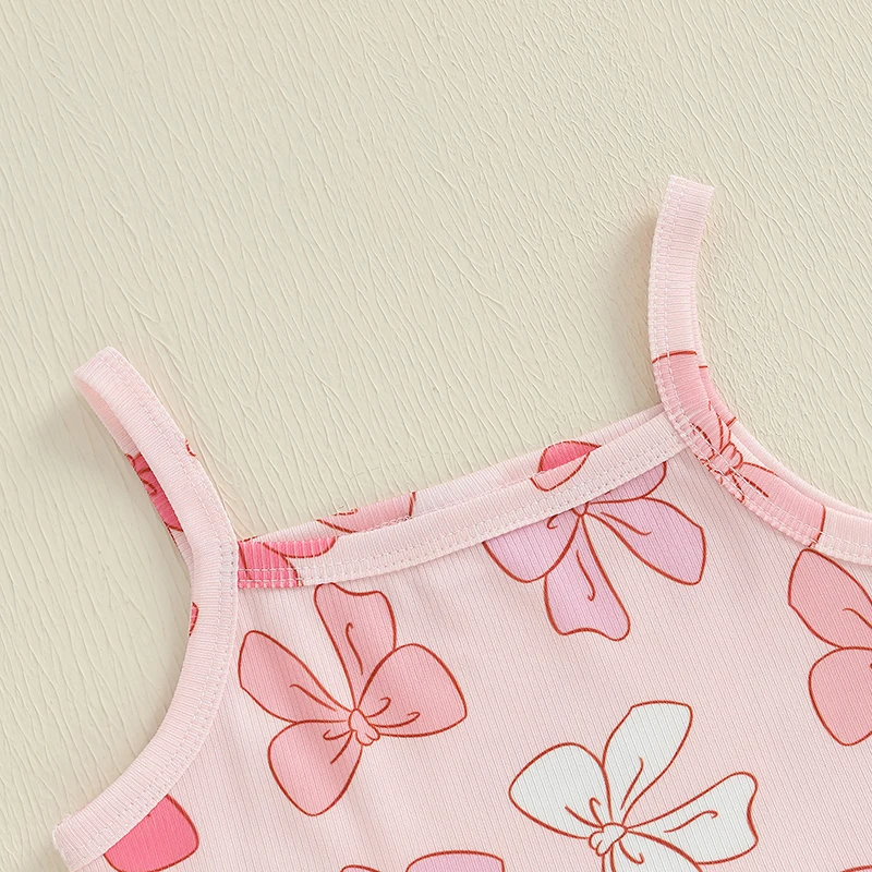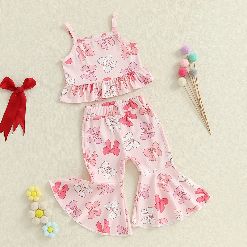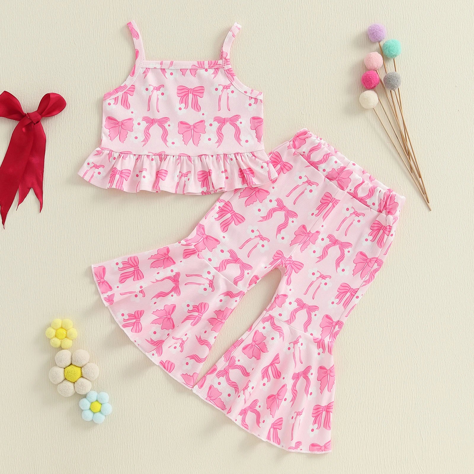 Toddler Girl Summer Outfits Bow Print Sleeveless Tank Tops Elastic Waist Flare Pants 2Pcs Clothes Set