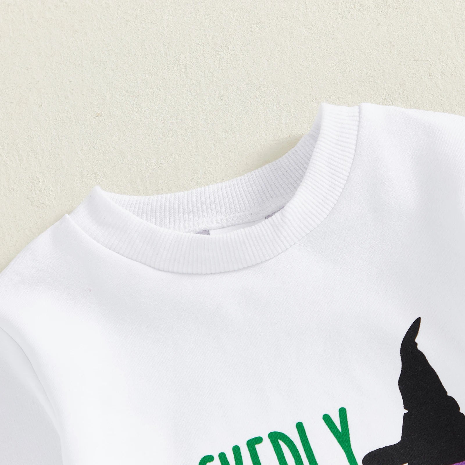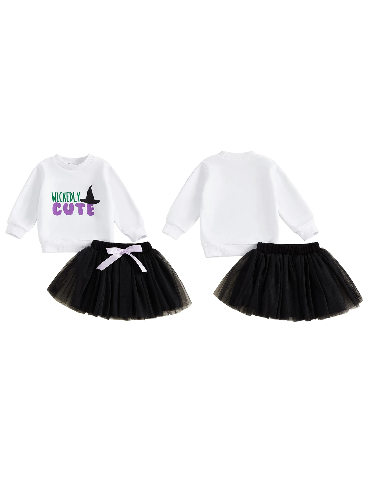 Toddler Girls 2Pcs Halloween Outfits Long Sleeve Witch Hat Print Sweatshirt + Tulle Skirt Set Baby Clothes