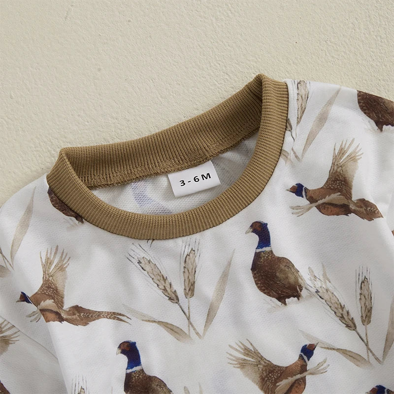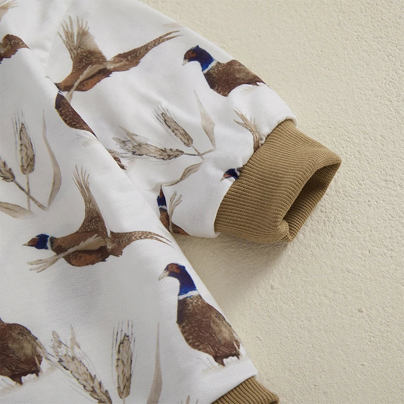 Baby Fall Sweatshirt Romper Bird Animal Print Long Sleeve Crew Neck Bubble Jumpsuit